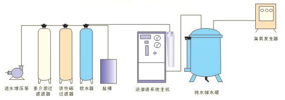 直飲水處理系統(tǒng) 分質(zhì)供水系統(tǒng)示意圖如右圖所示。工藝過程主主要分為兩部份,一部份是水處理系統(tǒng),一倍份為變頻供水系統(tǒng)。在這里主要介紹水處理系統(tǒng),變頻供水系統(tǒng)請點擊這里參閱相關(guān)內(nèi)容! 整個水處理過程即對自來水進行深度處理通過精濾過濾器過濾、軟化、膜(RO反滲透)分離、臭氧殺菌等過程,去除水中有害重金屬、有機物、細(xì)菌及病毒等雜質(zhì),使其成為優(yōu)質(zhì)飲用凈水(純凈水)通過專設(shè)的特種衛(wèi)生管道直接送入每家每戶,供居民使用,與原有的自來水徹底分開,原自來水成為日雜用水。(變頻供水是指對處理過的純水進行智能化向用戶送水)整全純水生產(chǎn)工藝還可參照桶(瓶)裝純凈水生產(chǎn)工藝