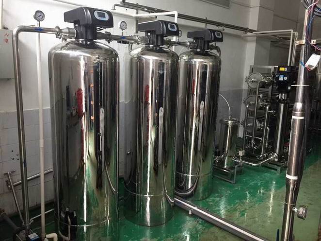 2、第二級預處理系統:采用果殼活性碳過濾器,目的是為了去除水中的色素、異味、生化有機物、降低水的余氯及農藥污染和其他對人體有害的污染物。系統可以自動(手動)進行反沖洗、正沖洗等一系列操作。3、第三級預處理系統:采用陽樹脂對水進行軟化,主要是降低水的硬度,去除水中的鈣、鎂離子(形成水垢的主要成分),可有效延長反滲透膜的使用壽命,并可進行自動再生。
